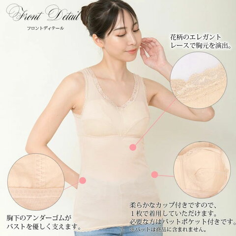 肌に優しい下着 ティコレクション の 女性下着 bra camisole inner ladies ブラトップ タンクトップ カップ付き の詳細 素材 身生地:レーヨン90%・シルク10% ・レース部分:ナイロン・ポリエステル ・不織布のカップ付き(パッドなし) ・生地ストレッチあり 原産国 中国製 サイズ 測り方を見る M L LL 3L商品により実寸サイズに多少バラつきがございます。